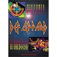 Historia (1988)/In The Round, In Your Face (1999) includes 5 bonus videos: "Slang," "Work It Out," "All I Want Is Everything," "Goodbye," and "Promises." "Historia" songs: Hello America, Let It Go, High 'N' Dry, Bringin' on the Heartbreak (Version I with Pete Willis), Photograph, Rock of Ages, Foolin', Too Late For Love, Rock! Rock! (Till You Drop), Bringin' on the Heartbreak (Version II with Phil Collen), Me and My Wine, Women, Animal, Pour Some Sugar On Me (U.K. Version), Hysteria, Armageddon It (Live), Pour Some Sugar On Me (U.S. Version), and Love Bites. "In the Round in Your Face" songs: Stagefright, Rock! Rock (Til You Drop), Women, Too Late For Love, Hysteria, Gods of War, Die Hard the Hunter, Bringin' on the Heartbreak, Foolin', Armageddon It, Animal, Pour Some Sugar On Me, Rock of Ages, and Photograph. Includes: Photo Gallery; Discography; Interview with the Band.